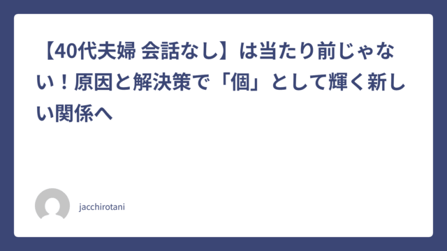 【40代夫婦 会話なし】は当たり前じゃない!原因と解決策で「個」として輝く新しい関係へ