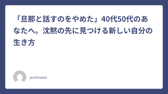 「旦那と話すのをやめた」40代50代のあなたへ。沈黙の先に見つける新しい自分の生き方
