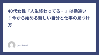 子育てが少し落ち着き、ふと自分の時間が増えたことに気づく40代。これまで家族のために全力で走ってきたけれど、「これからの私の人生、このままでいいのかな?」そんな思いが頭をよぎることはありませんか?