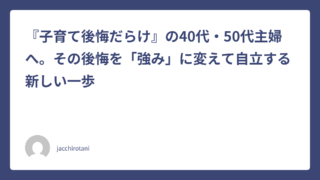 子育て中は、子どもの成長や家族の幸せが最優先。自分のことは後回しにして、家族のために時間とエネルギーを注いできた方がほとんどでしょう。それは非常に素晴らしいことですが、一方で、ふと自分の足元を見たときに、「私は、これから何をしたいんだろう?」という問いに答えられなくなっている自分に気づくことがあります。
