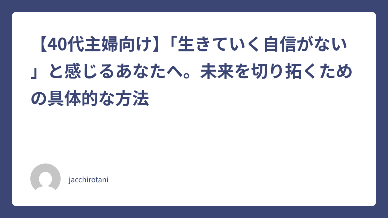40代から「生きていく自信がない」を克服し、新しい一歩を踏み出す方法